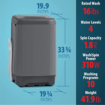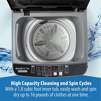 Enjoy fully automatic and carefree washing utilizing its many features found on larger machines. POWERFUL HIGH CAPACITY - Able to wash up to 16 pounds of laundry at a time, power through, shirts, jeans, socks, and much more without having to trek to your closest laundromat. A sturdy steel inner tub agitates and spins clothes removing odors and deeply engrained stains.