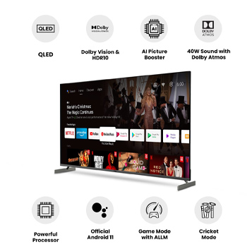 Resolution: 4K QLED (3840x2160) | Refresh Rate: 60 hertz | 178 Degree wide viewing angle Connectivity: 4 HDMI ports to connect set top box, Blue Ray players | HDMI 2.1 for gaming console | 2 USB ports to connect hard drives and other USB devices | 2.4/5GHz WiFi | HDMI CEC & eARC/ARC | Google Chrome Cast I Bluetooth 5.0